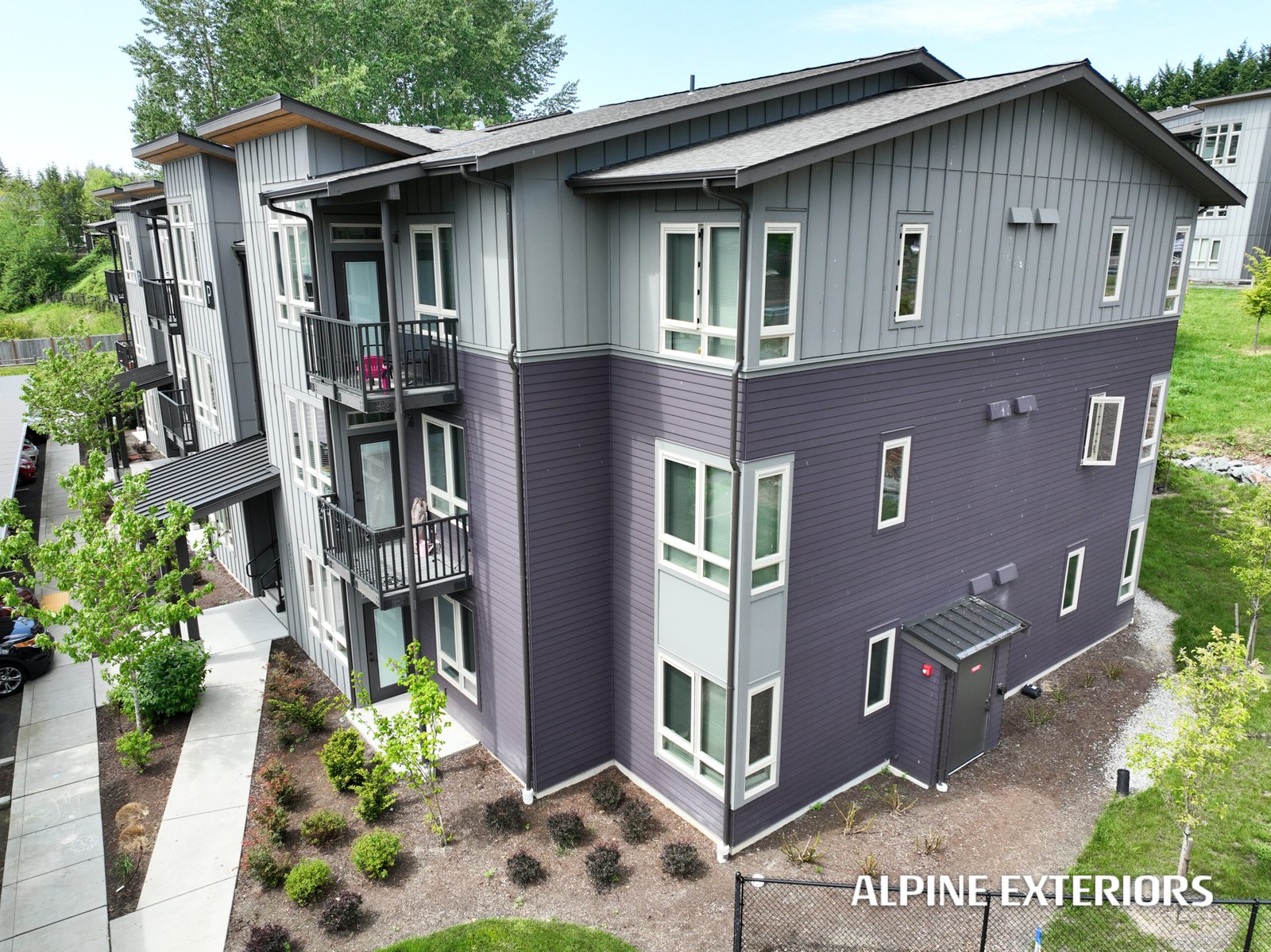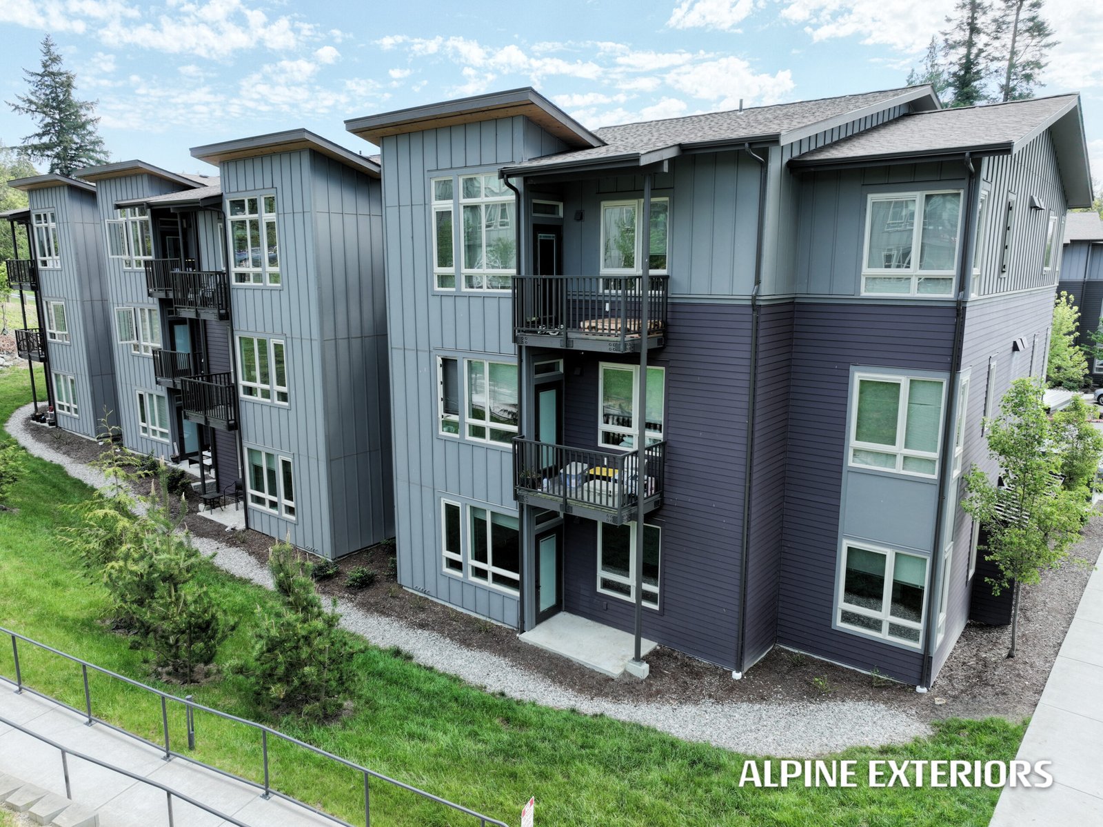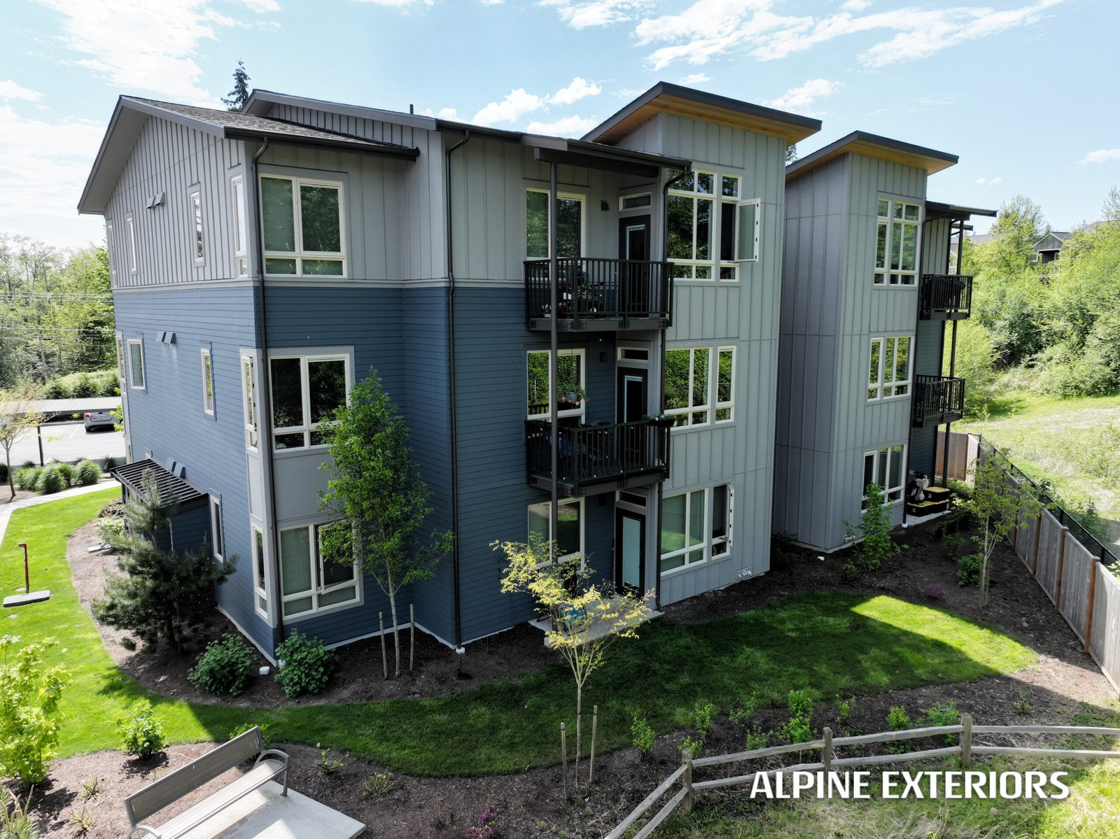 Alpine Exteriors was proud to partner with Exxel Pacific, one of the largest and most respected multi-family builders in Washington State, to complete the full exterior cladding and opening installation for this 60-unit apartment complex in Stanwood, WA. This new construction project involved high-volume siding, custom soffits, and large-scale window and door packages — all executed in phases and integrated with the general contractor’s aggressive production schedule.