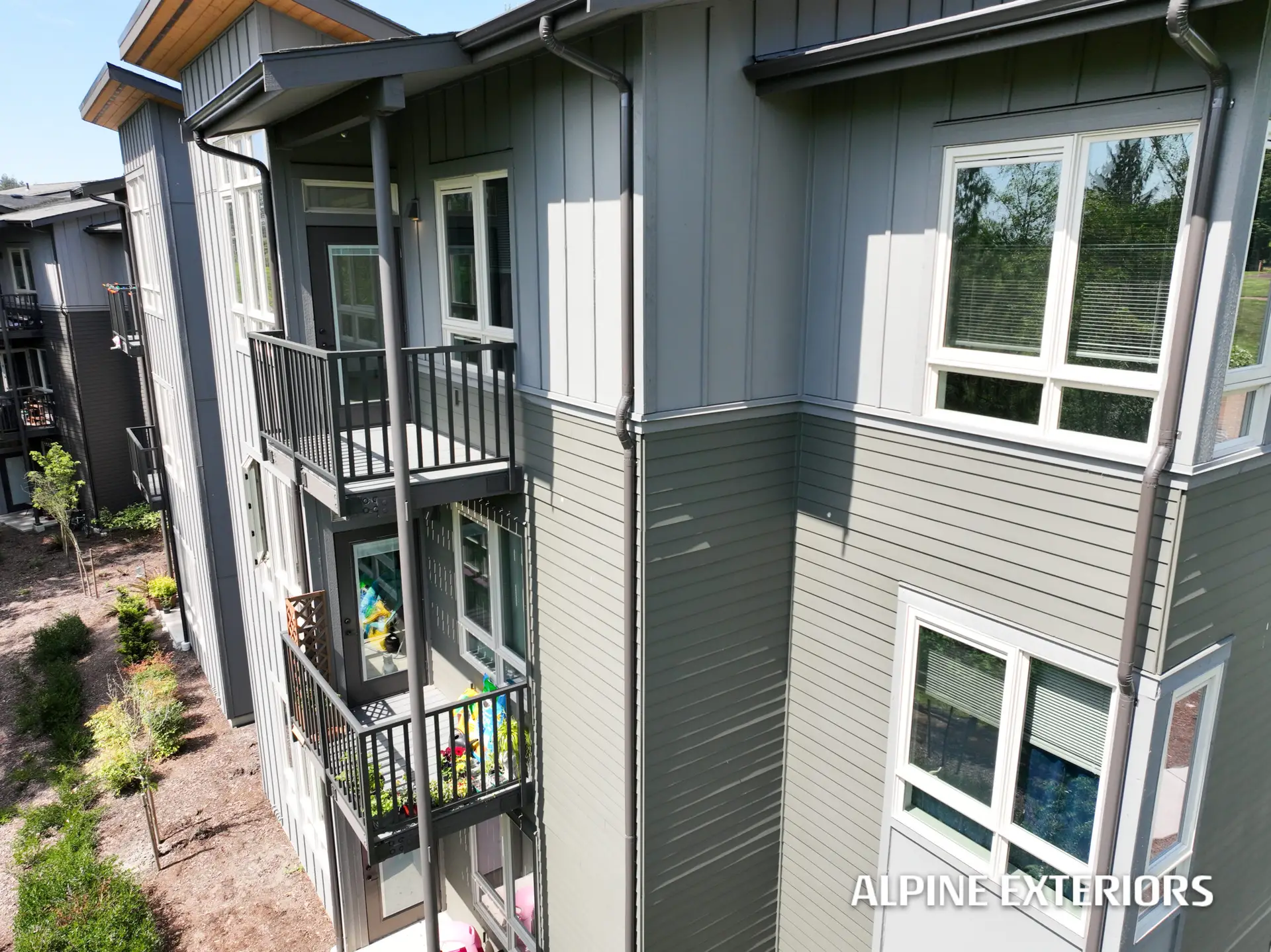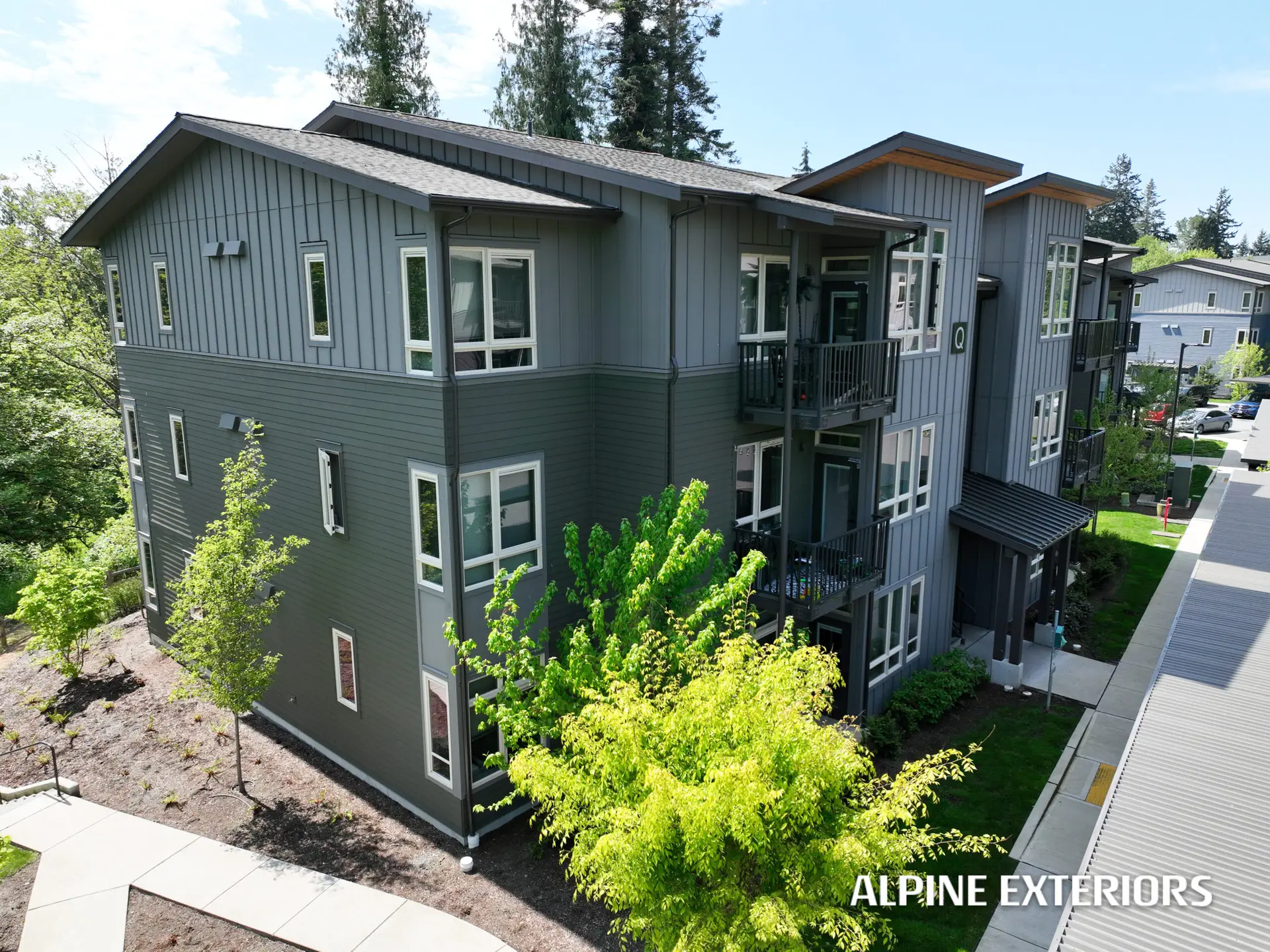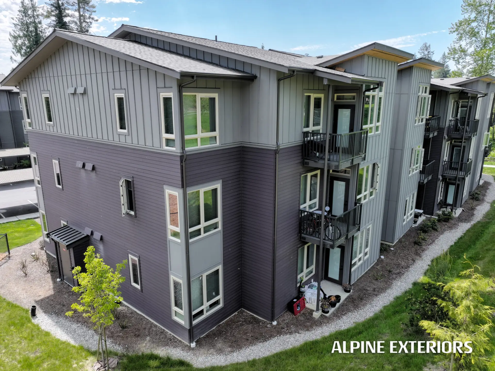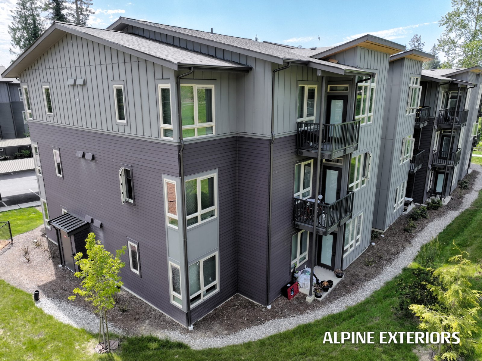 stanwood_multi_family_siding_project_exxel_pacific_james_hardie_lap_siding_board_and_batten_apartment_building_cladding_large_scale_window_installation_multifamily_construction_commercial_siding_contractor_washington_state_milgard_window_installer_pine_tongue_and_groove_soffits_600_windows_doors_alpine_exteriors_multifamily_contractor_project_1730_building_envelope_solution_condo_apartment_complex_cladding_wrapping_siding_package_commercial_exterior_subcontractor_code_compliant_cladding