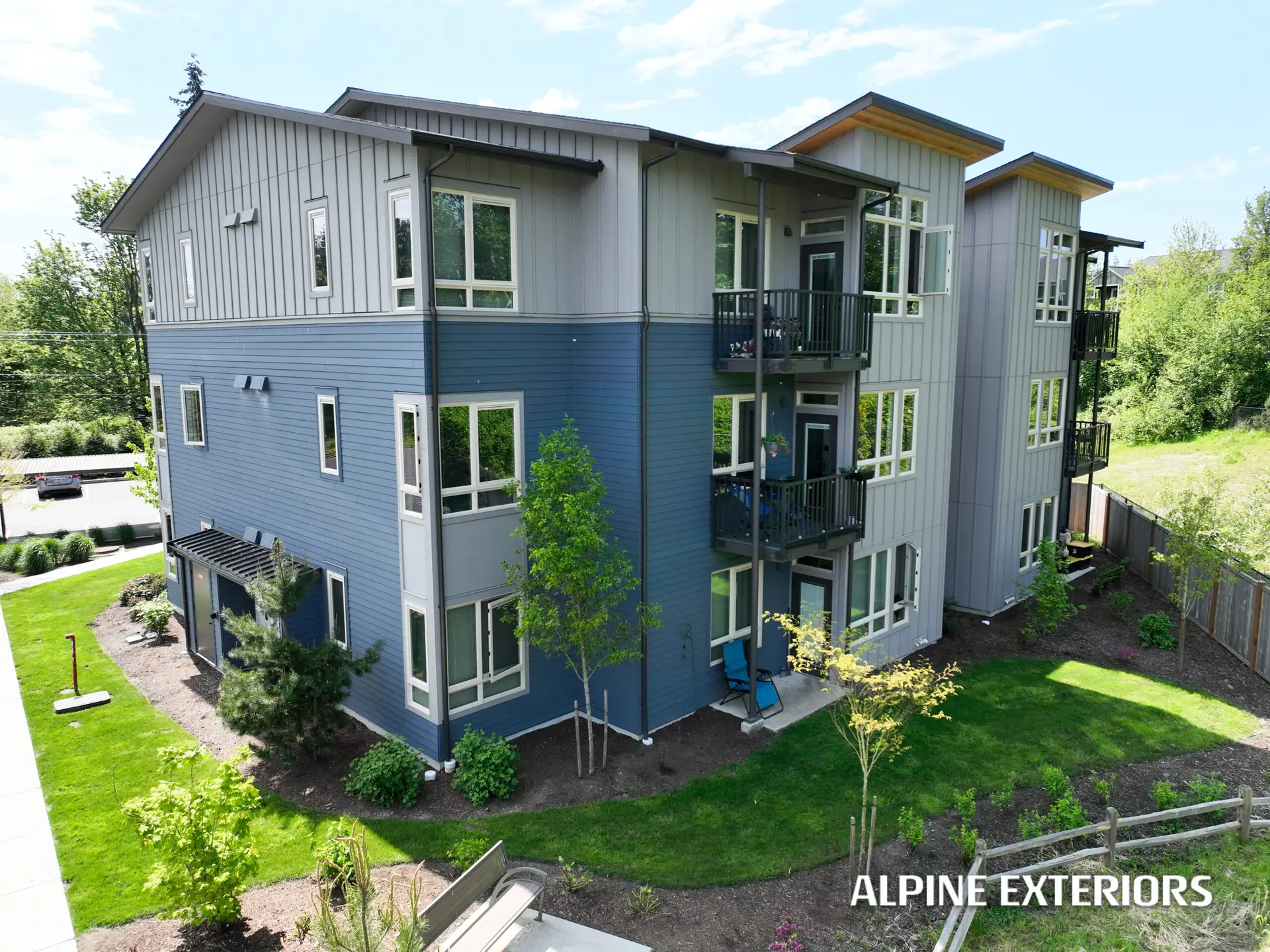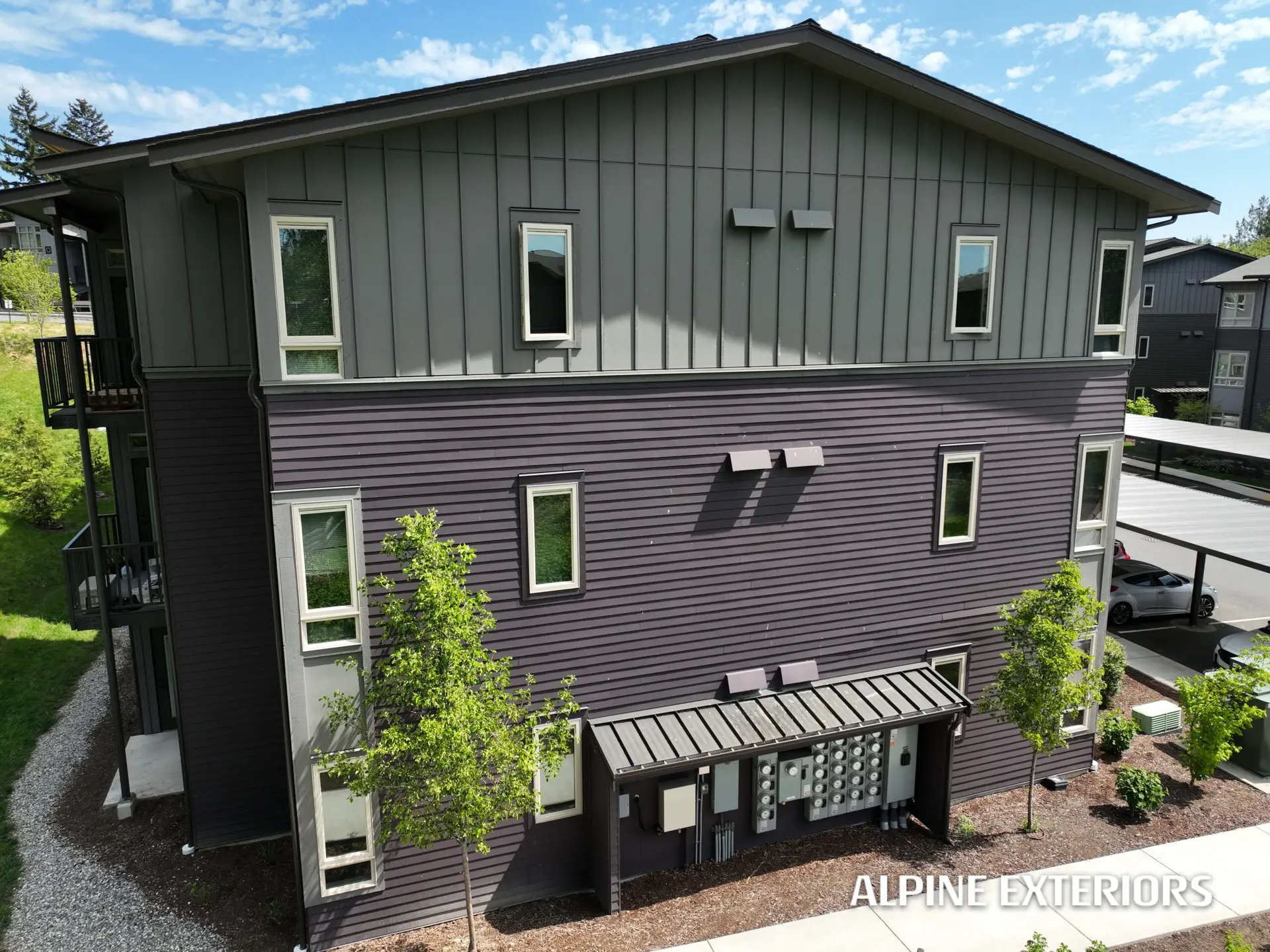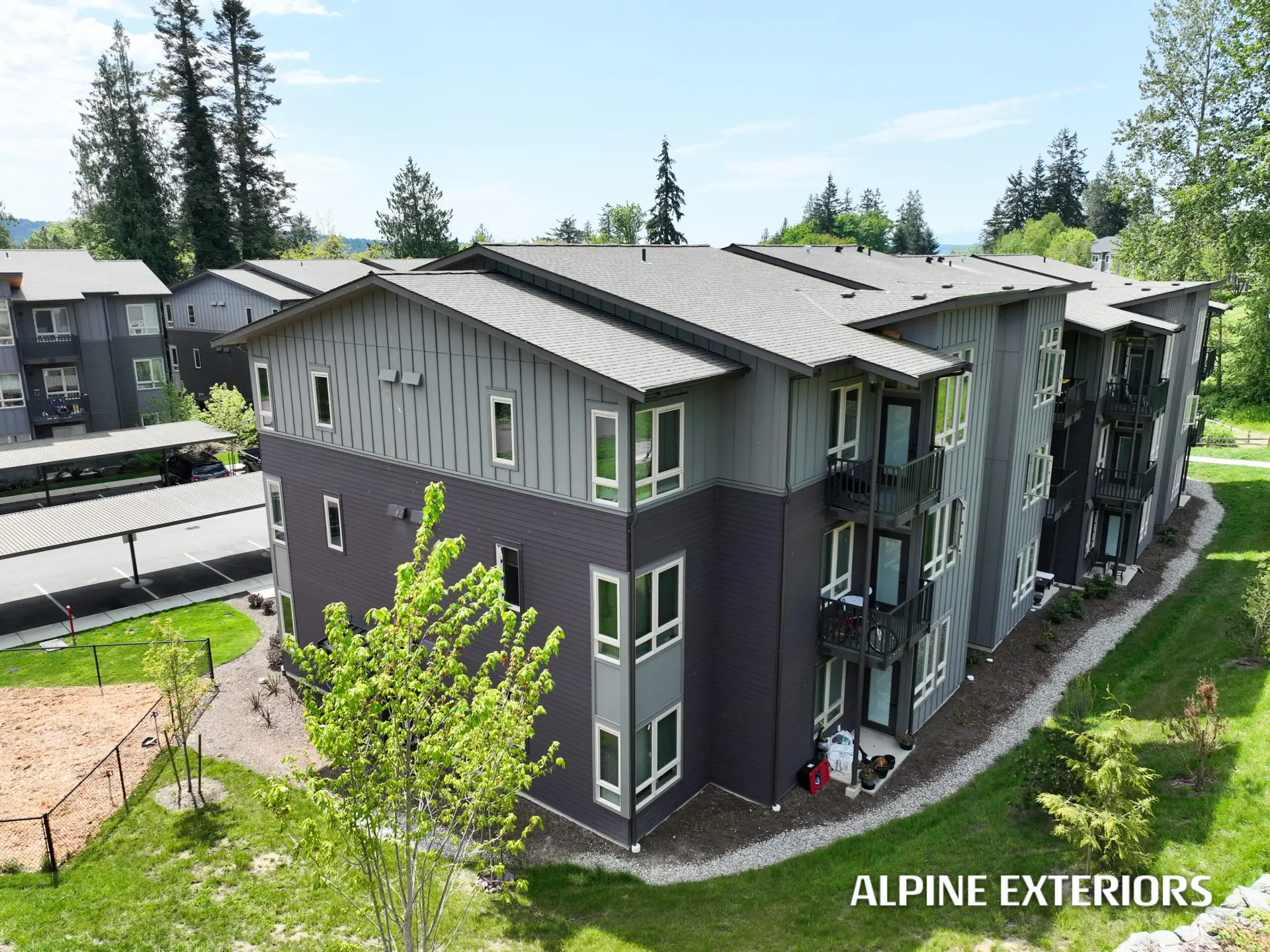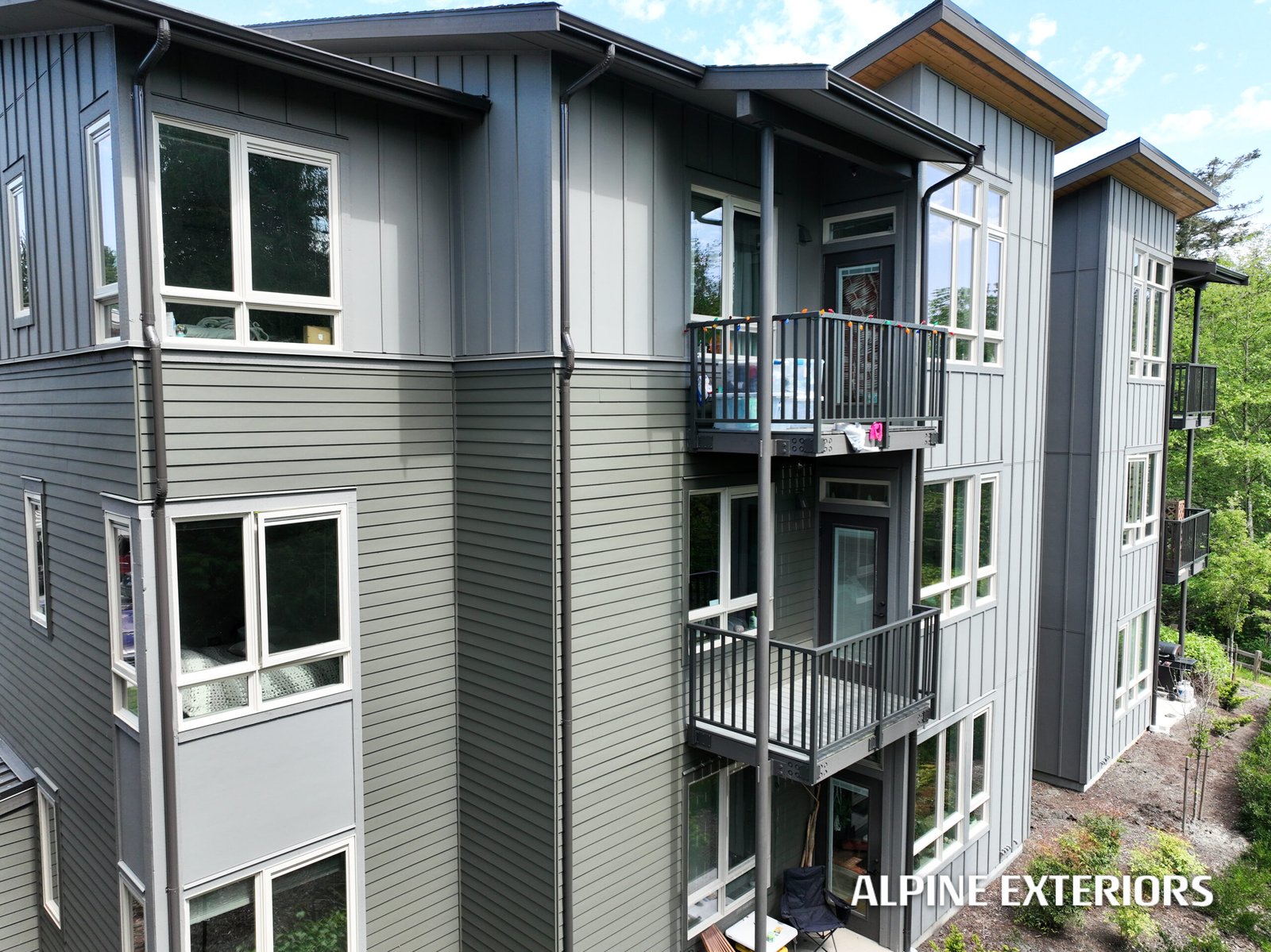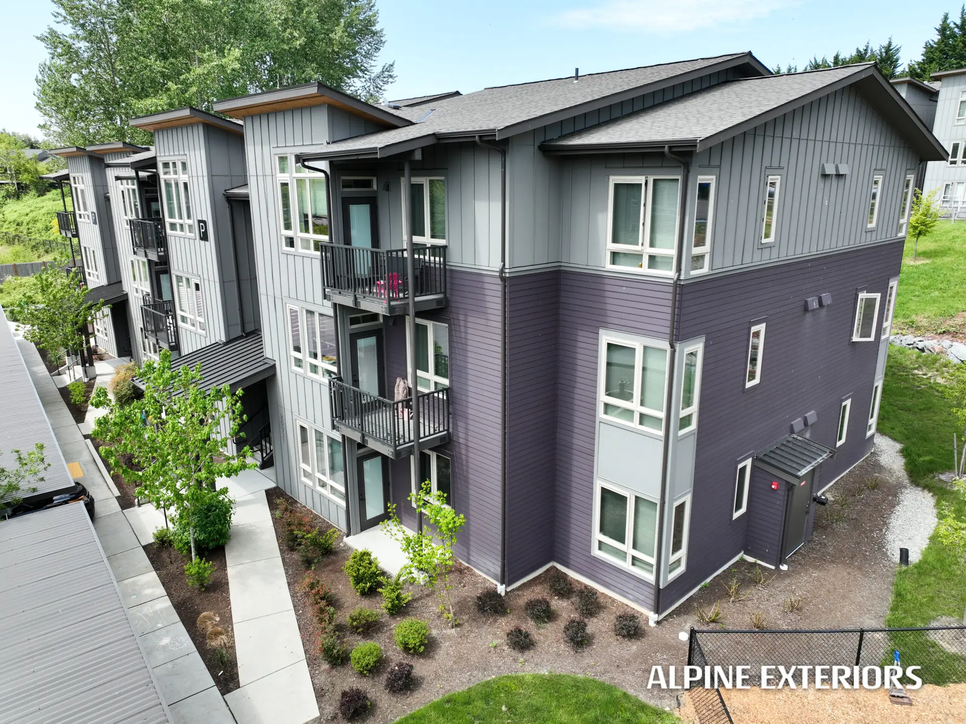 stanwood_multi_family_siding_project_exxel_pacific_james_hardie_lap_siding_board_and_batten_apartment_building_cladding_large_scale_window_installation_multifamily_construction_commercial_siding_contractor_washington_state_milgard_window_installer_pine_tongue_and_groove_soffits_600_windows_doors_alpine_exteriors_multifamily_contractor_project_1730_building_envelope_solution_condo_apartment_complex_cladding_wrapping_siding_package_commercial_exterior_subcontractor_code_compliant_cladding