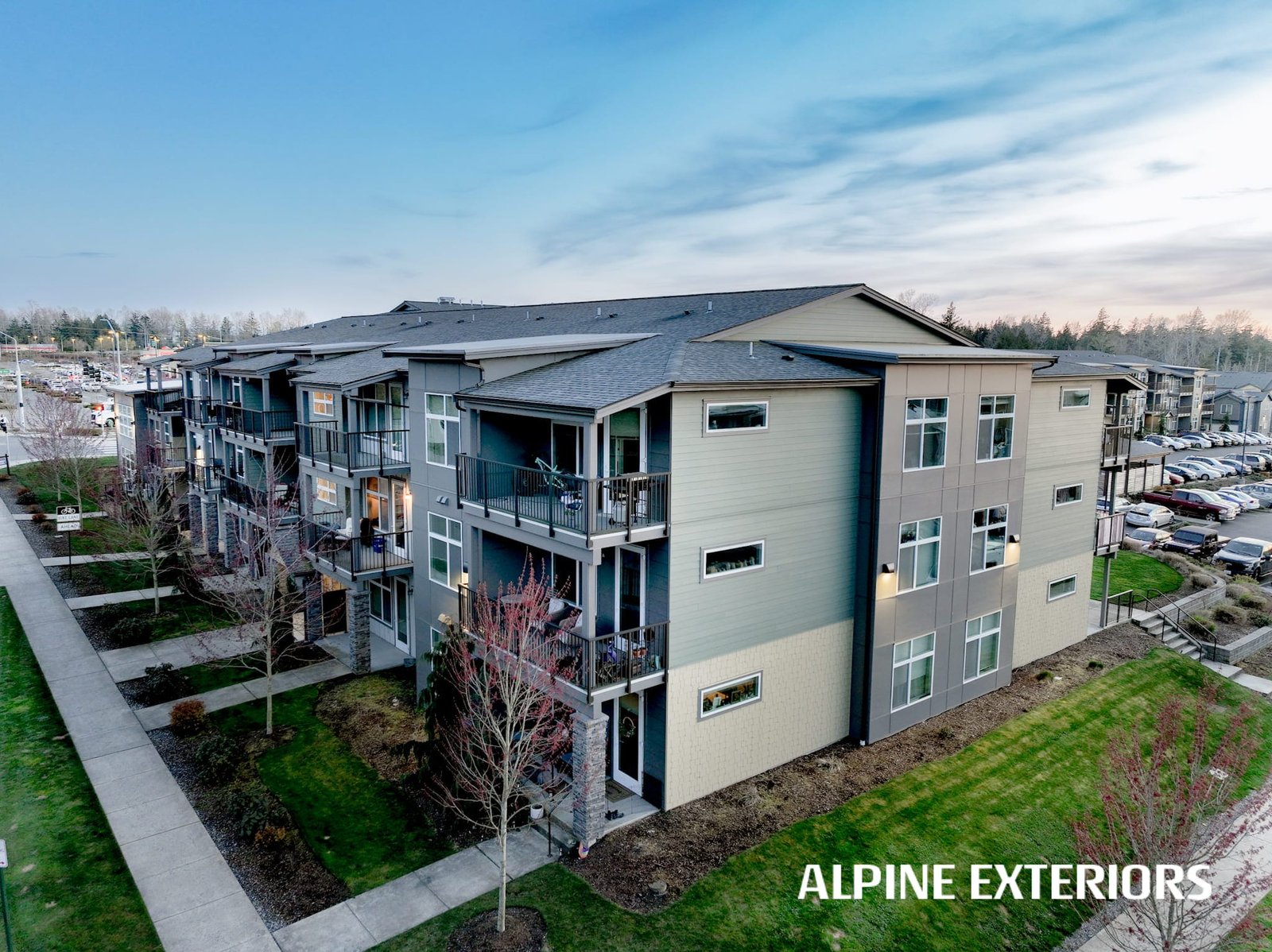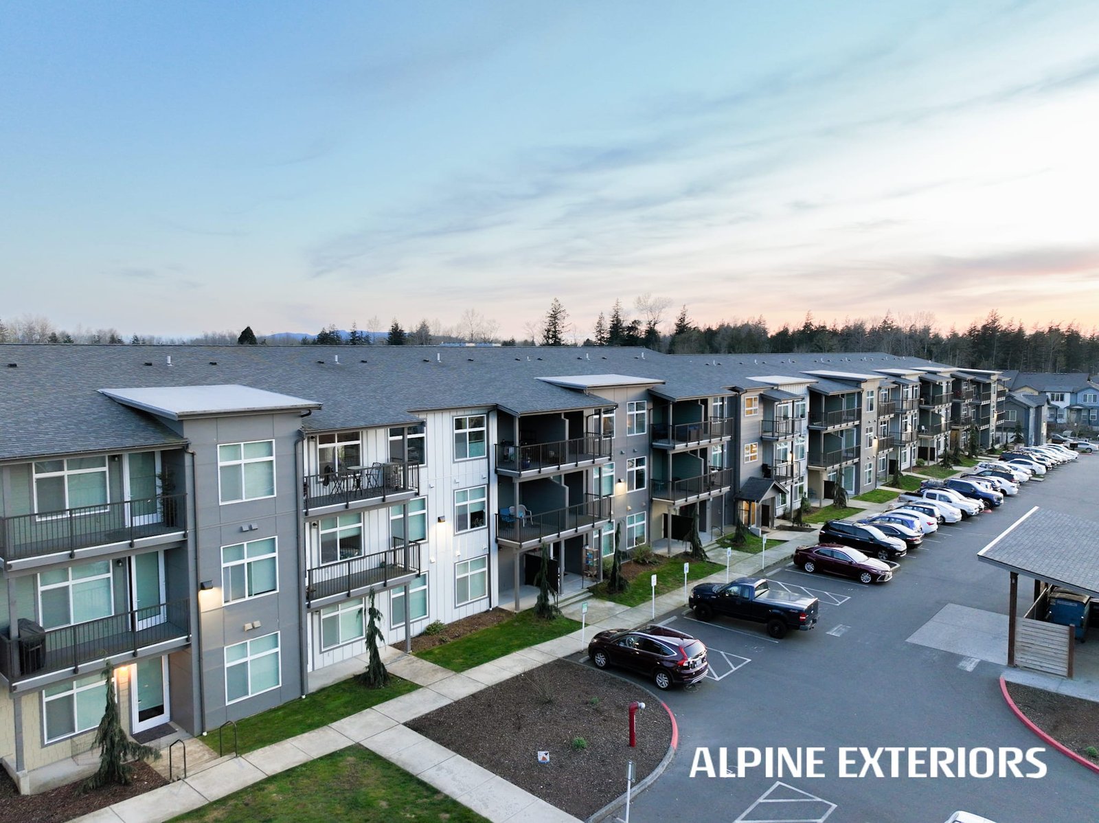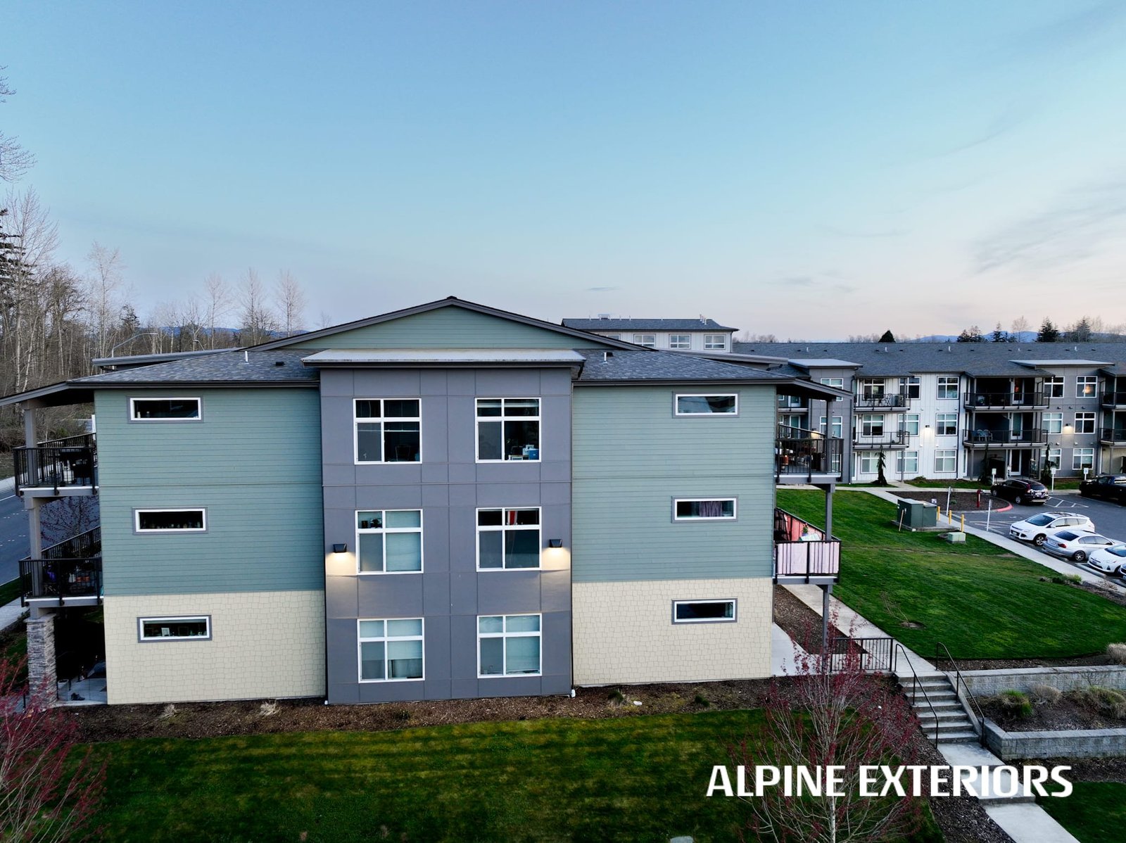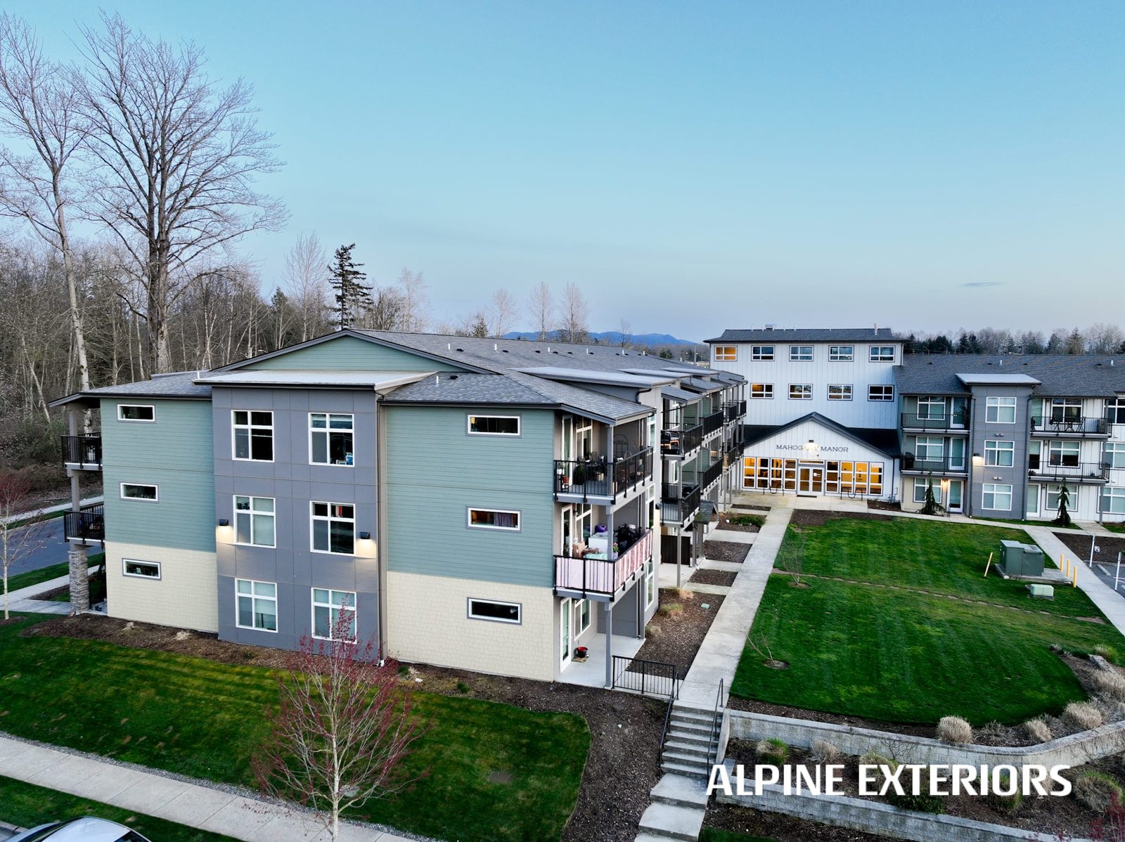 Alpine Exteriors proudly partnered with Dawson Construction, one of Whatcom County’s most respected and established general contractors, on the successful delivery of Mahogany Manor Apartments — a major ground-up, new construction project consisting of 130 apartment units and six additional 4-plex buildings.