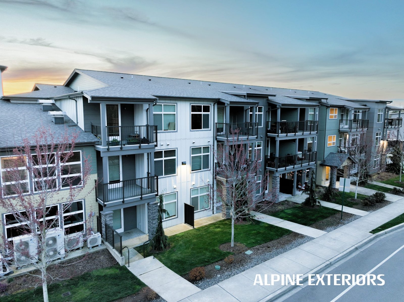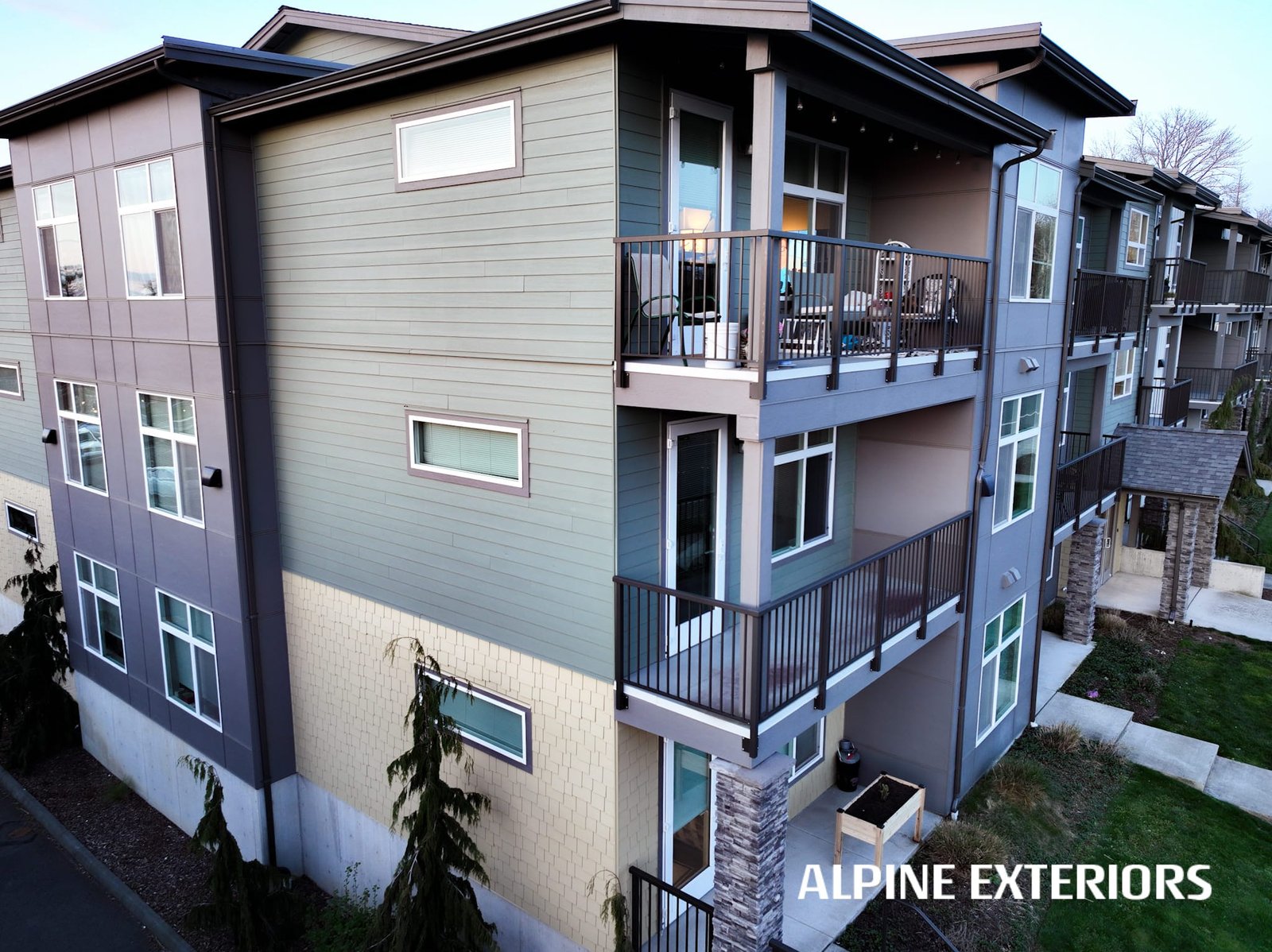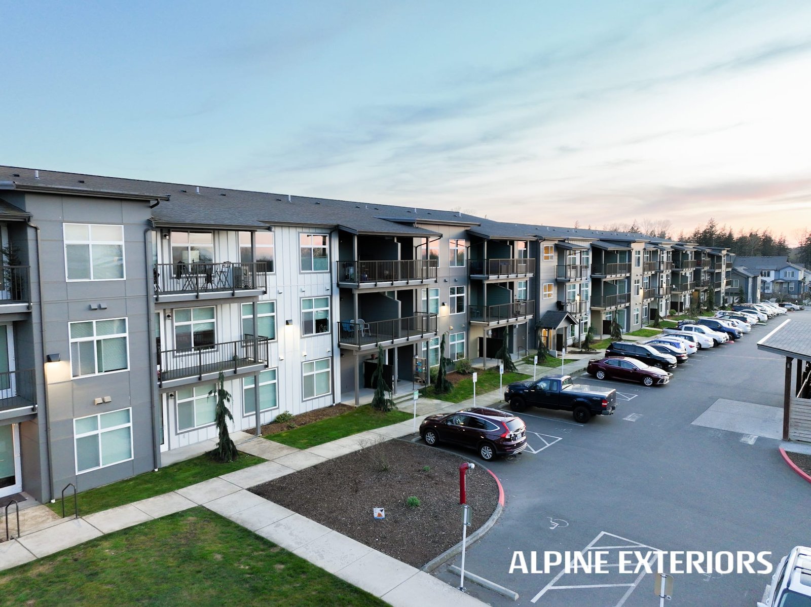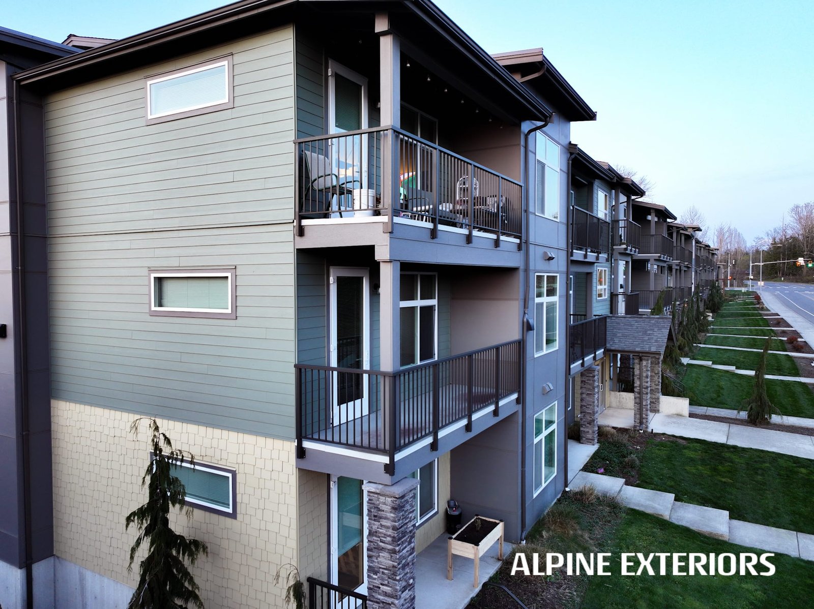Alpine Exteriors proudly partnered with Dawson Construction, one of Whatcom County’s most respected and established general contractors, on the successful delivery of Mahogany Manor Apartments — a major ground-up, new construction project consisting of 130 apartment units and six additional 4-plex buildings.
