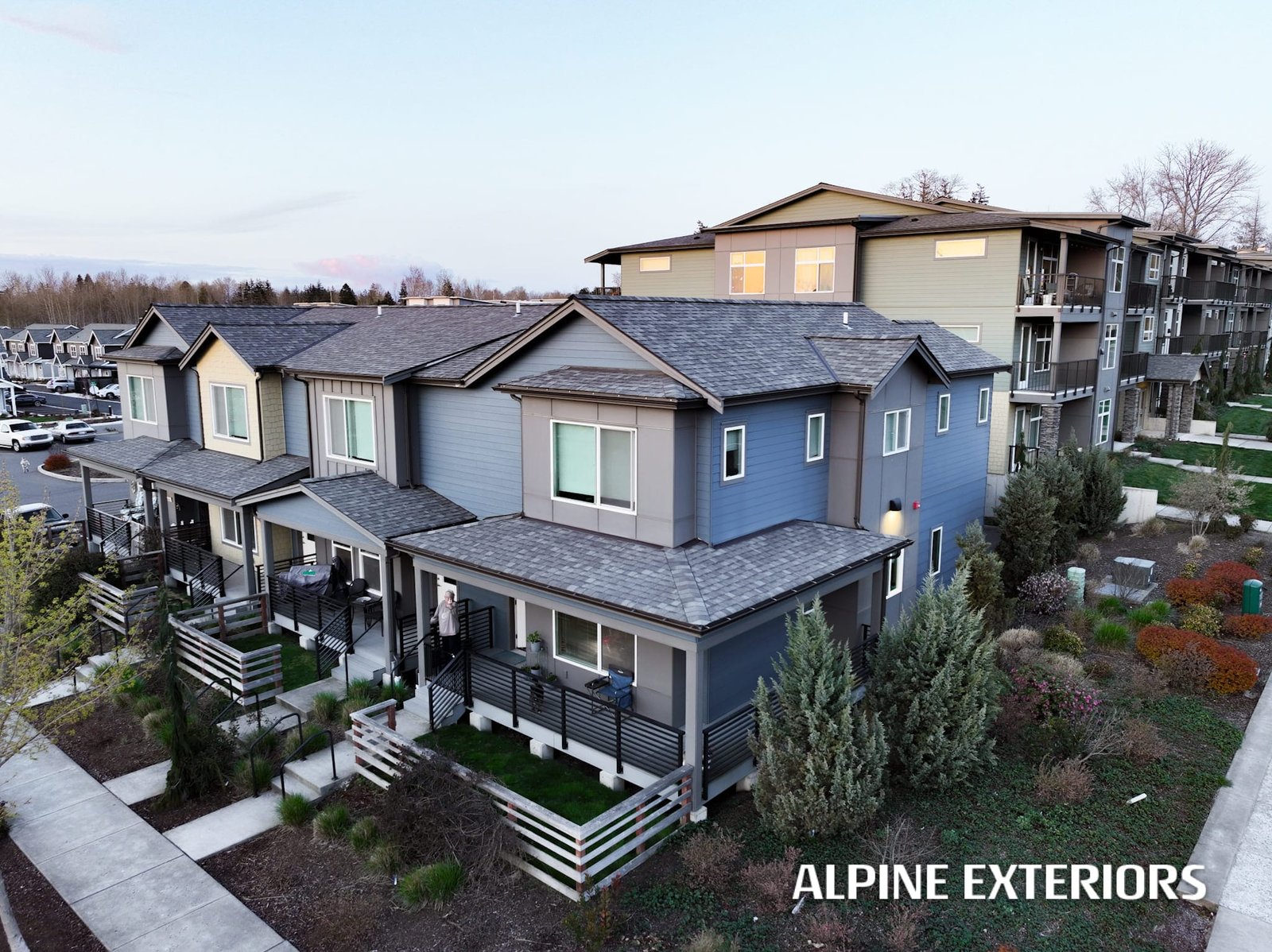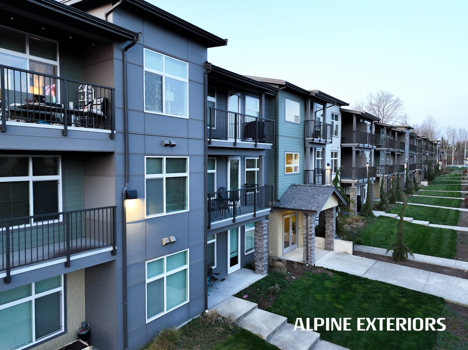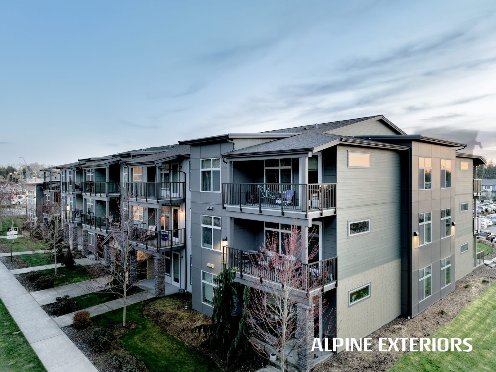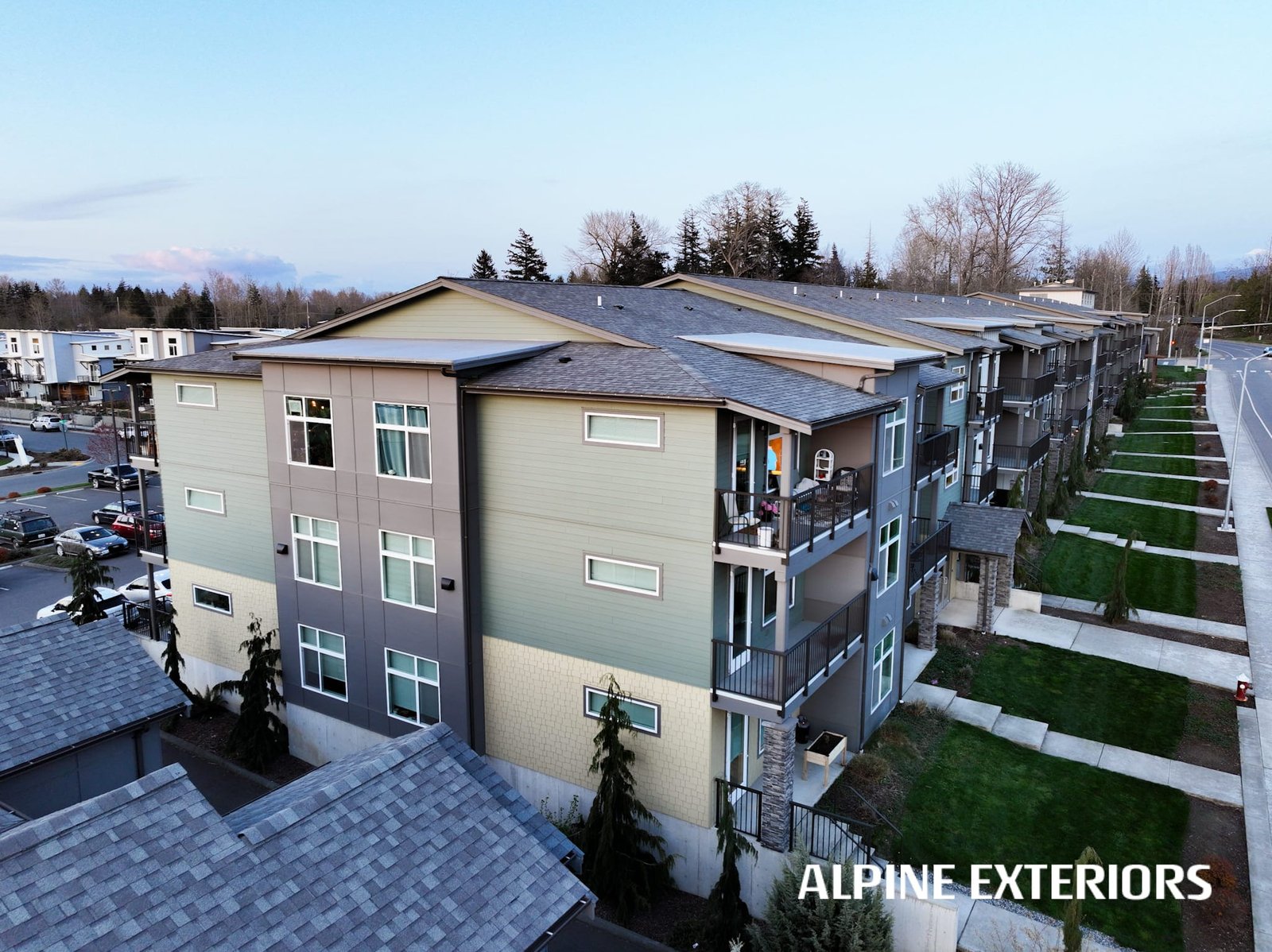 Alpine Exteriors proudly partnered with Dawson Construction, one of Whatcom County’s most respected and established general contractors, on the successful delivery of Mahogany Manor Apartments — a major ground-up, new construction project consisting of 130 apartment units and six additional 4-plex buildings.