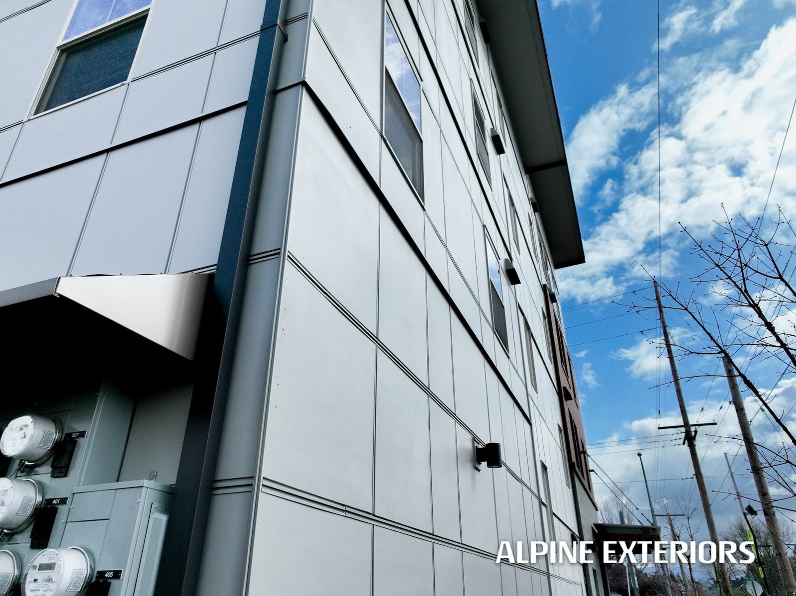 Over the course of six months, Alpine Exteriors played a pivotal role in delivering a complete commercial-grade exterior system, encompassing architectural James Hardie® panel installation, advanced moisture protection, full-scale painting, and precision installation of over 120 windows and doors — all executed in tightly scheduled phases and coordinated with Exxel Pacific’s construction leadership.