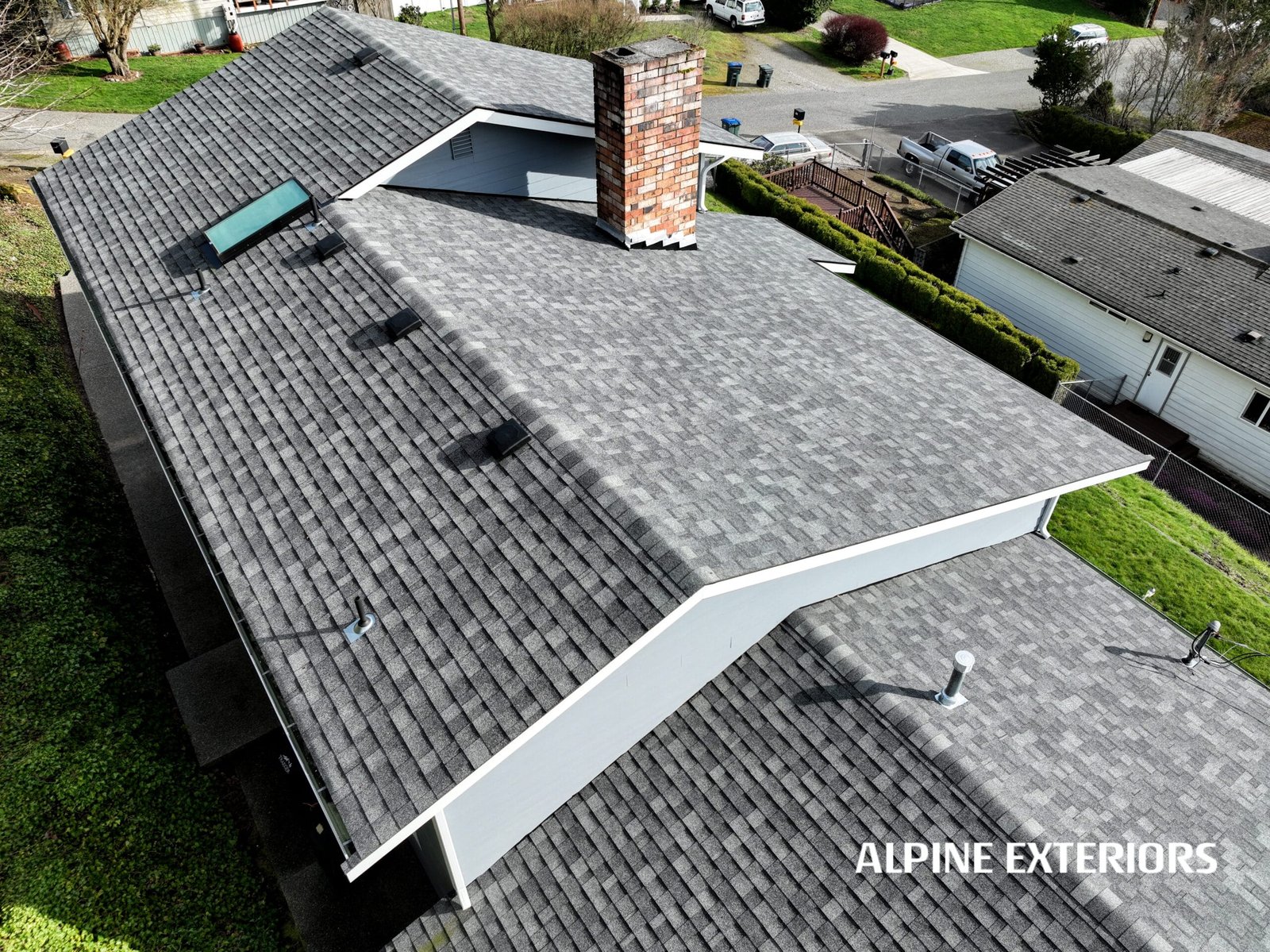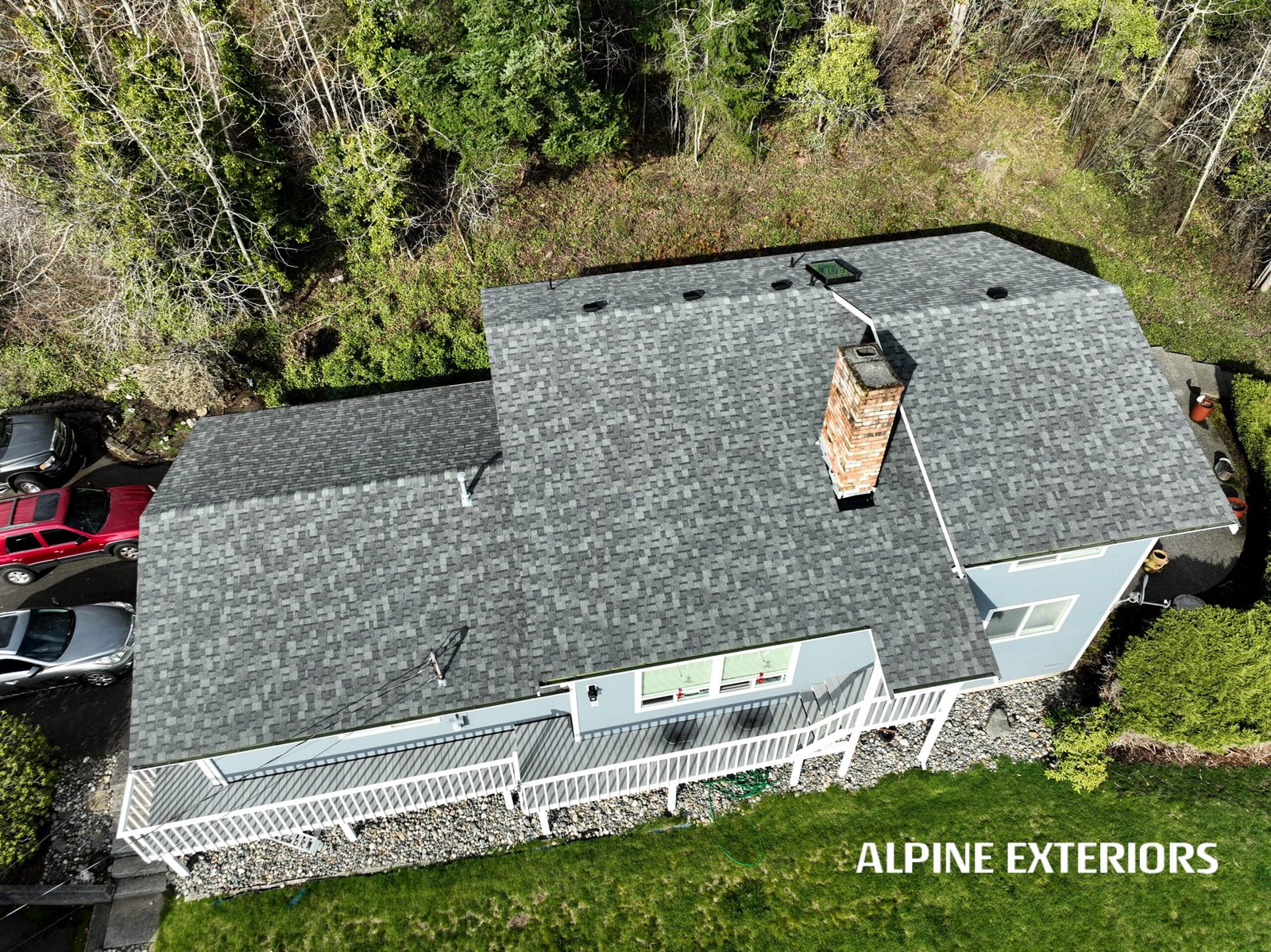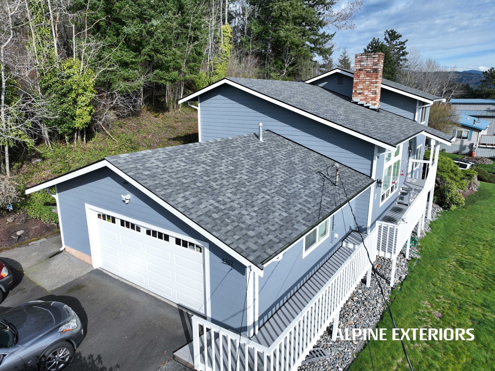 This full-scope exterior transformation by Alpine Exteriors showcases what it means to do everything right — all at once. The project involved a complete overhaul of the home’s envelope: siding, trim, windows, doors, decking, roof, skylights, gutters, and exterior paint — with every component installed by our expert team using top-tier materials and manufacturer-approved methods.