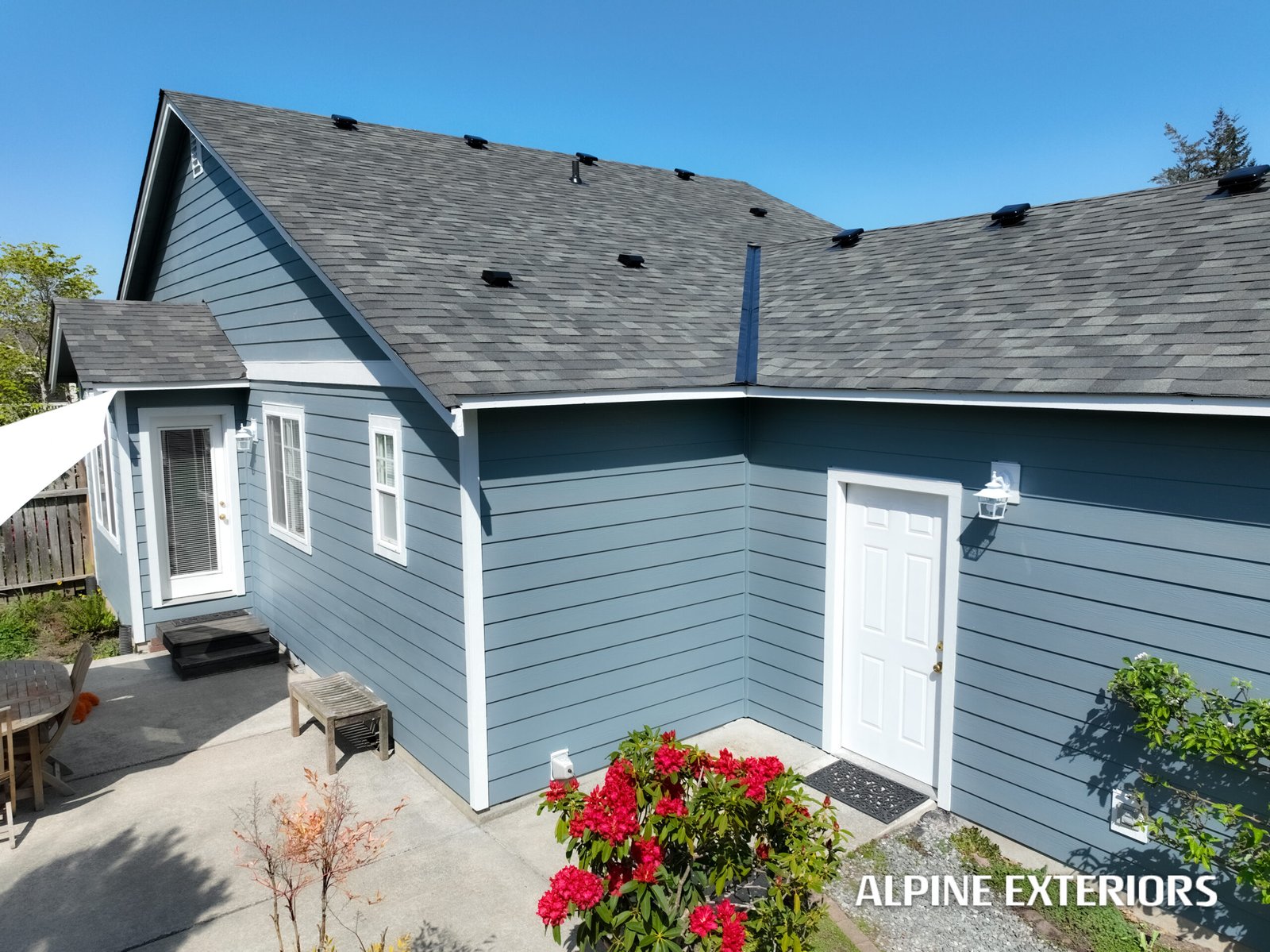 boothbay_blue_colorplus_james_hardie_siding_arctic_white_trim_belly_bands_hardie_porch_soffits_fiber_cement_lap_siding_exterior_remodel_pacific_northwest_bellingham_home_hardie_wrap_weather_barrier_full_siding_replacement_custom_home_envelope_solution_mildew_resistant_siding_colorplus_finish_factory_painted_lap_siding_exterior_trim_package_code_compliant_siding_installer_alpine_exteriors_project_1728_best_siding_company_wa
