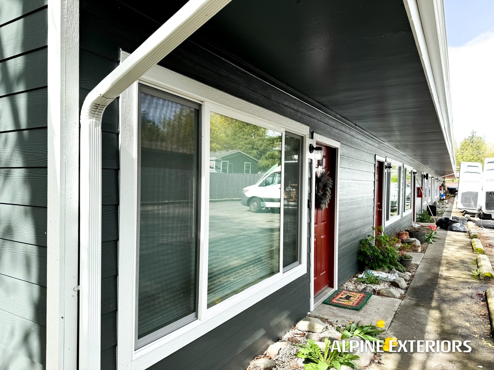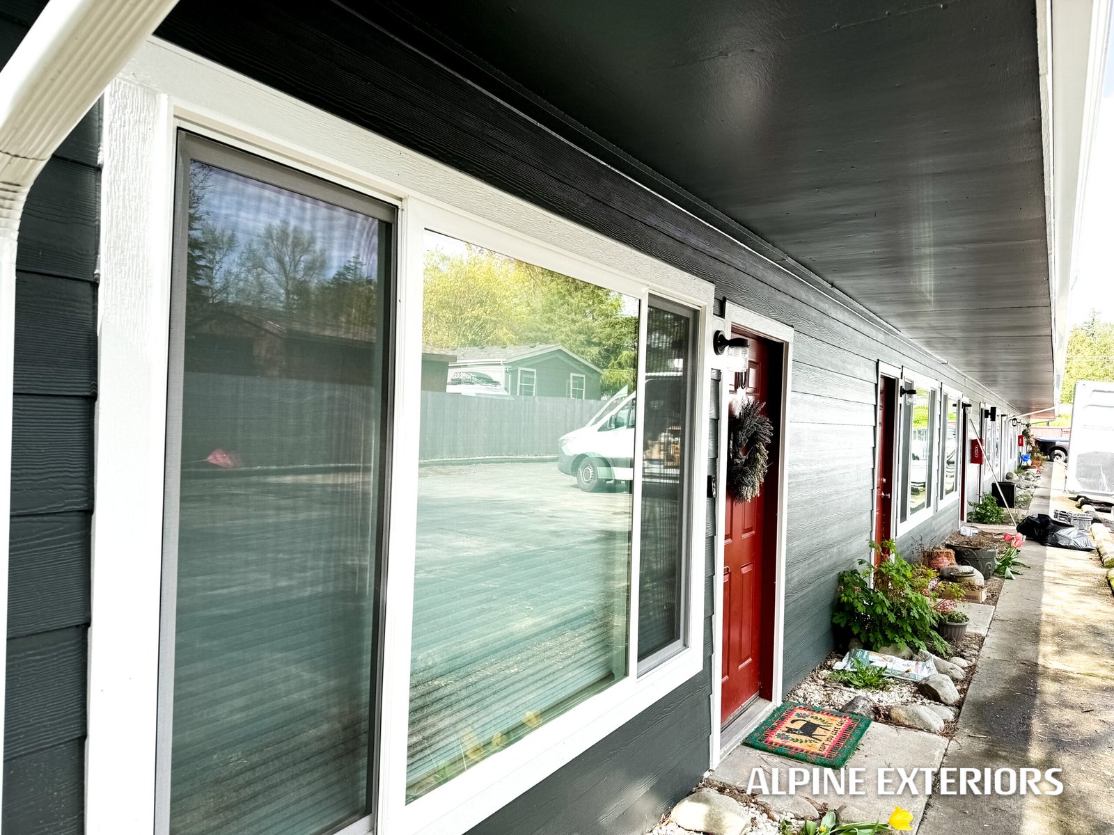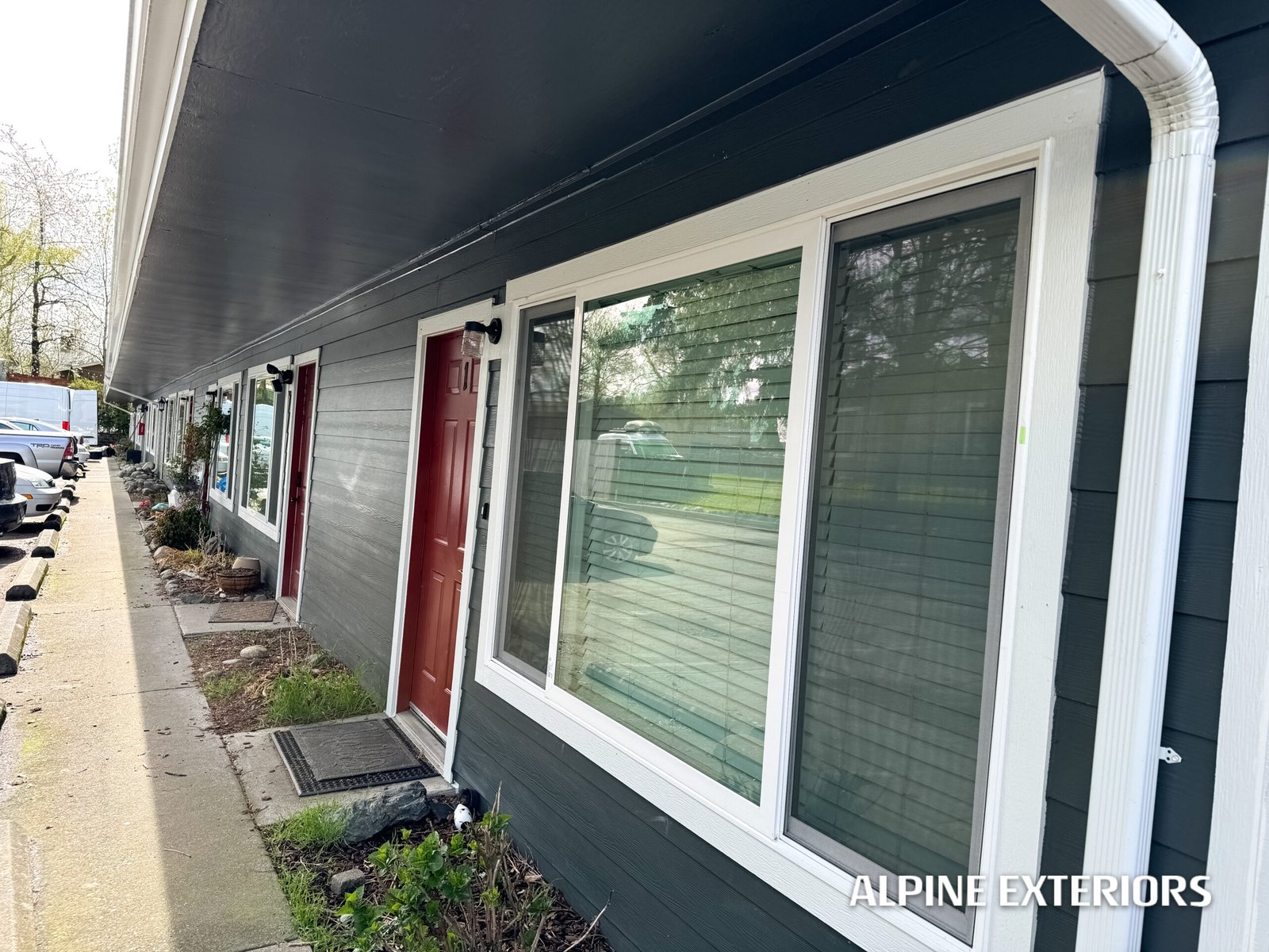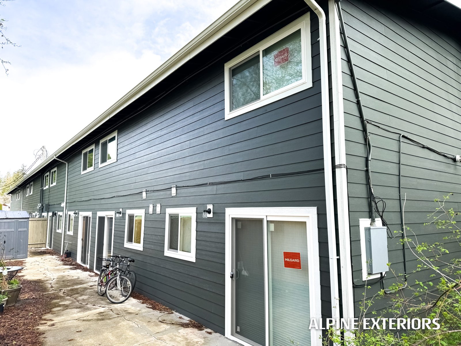 10-Unit Complex | James Hardie® Iron Gray ColorPlus Lap Siding | Milgard® Windows & Sliding Doors | Sheathing Replacement, Rot Repair, Batt Insulation & Painted Soffits