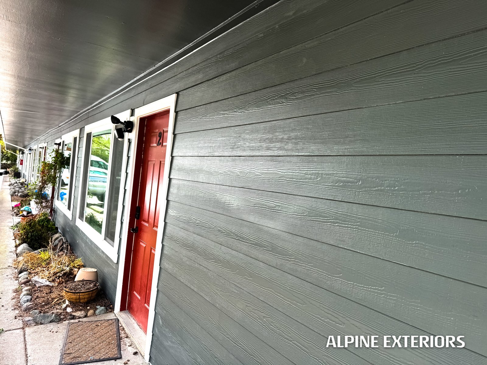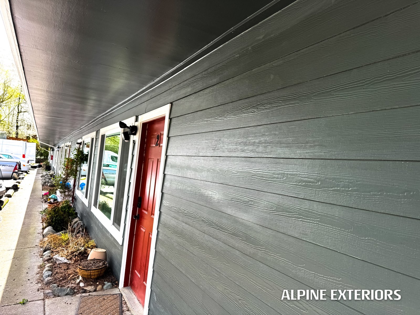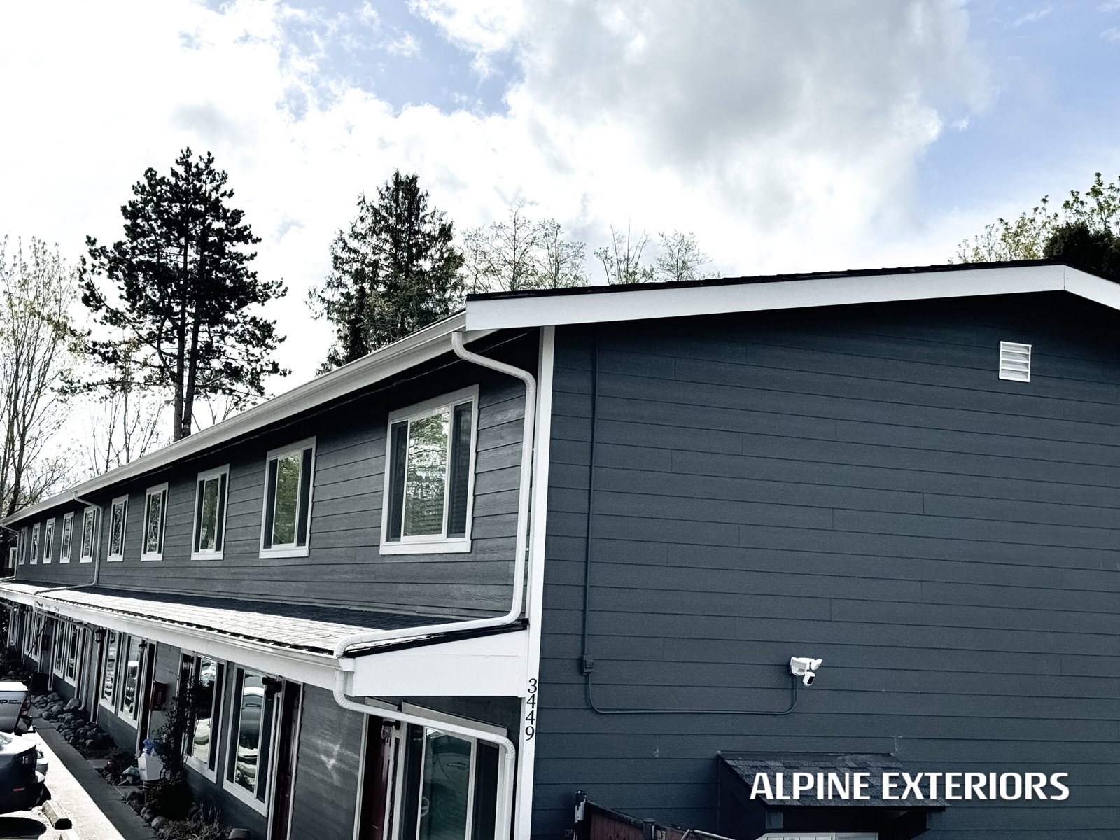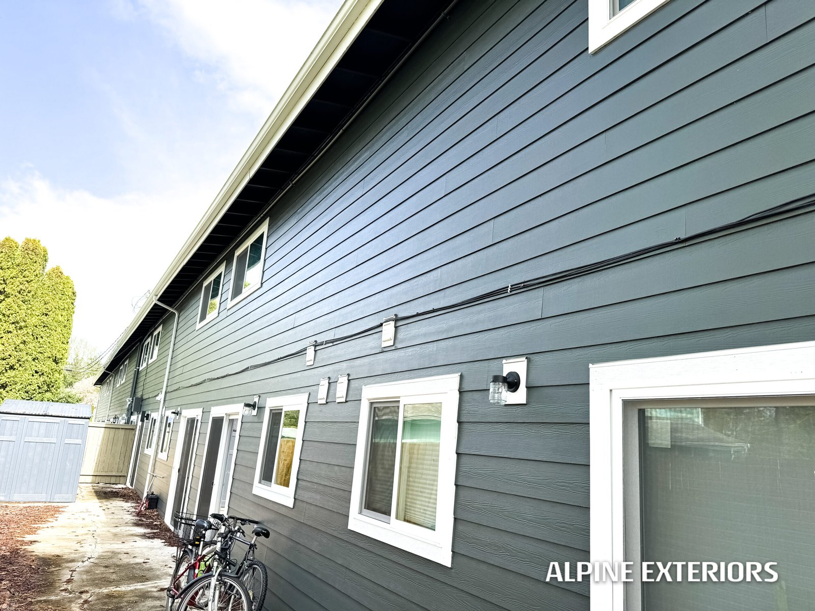10-Unit Complex | James Hardie® Iron Gray ColorPlus Lap Siding | Milgard® Windows & Sliding Doors | Sheathing Replacement, Rot Repair, Batt Insulation & Painted Soffits